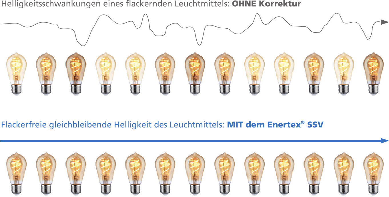 Mit dem Enertex® KNX HV Dimmer wird auch die Problematik der Restströme deutlich entschärft. Restströme von herkömmlichen Dimmern führen oft dazu, dass bei LED-Lampen geringer Leistung selbst im ausgeschalteten Zustand ein ständiges Glimmen sichtbar ist. Die hochwertige Ansteuerung des neuen Enertex Dimmers verringert die Restströme auf bis zu ein Zehntel gegenüber anderen Dimmern. Lampen sind damit im Aus-Zustand komplett dunkel.